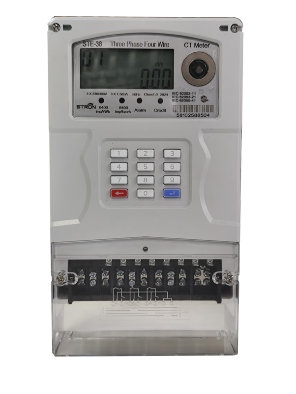 STE38-A es un medidor de electricidad de tres fases prepagado, de tipo teclado, controlado automáticamente por válvula, conforme al estándar STS.Se puede recargar con el software de venta directa Stronpay y comunicarse con el sistema AMI a través del módulo LORA-RF.